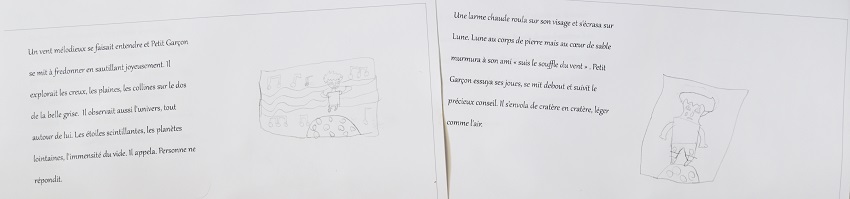 Nous avons tout d'abord écrit l'histoire, ensemble, sur ordinateur. Nous l'avons ensuite mise en page et imprimée pour que Gwendoline puisse faire des dessins correspondant au texte de chaque page.