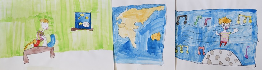 Les dessins peints ont ensuite à nouveau été scannés puis retouchés, certains ont nécessité un montage : le planisphère a été transféré