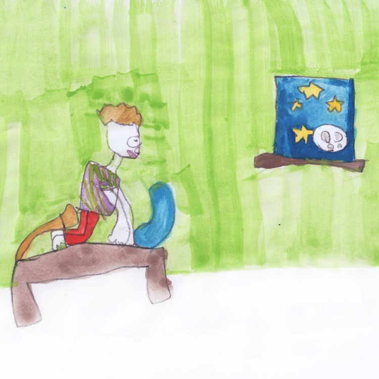 Petit Garçon regarda par la fenêtre pour y apercevoir Lune.